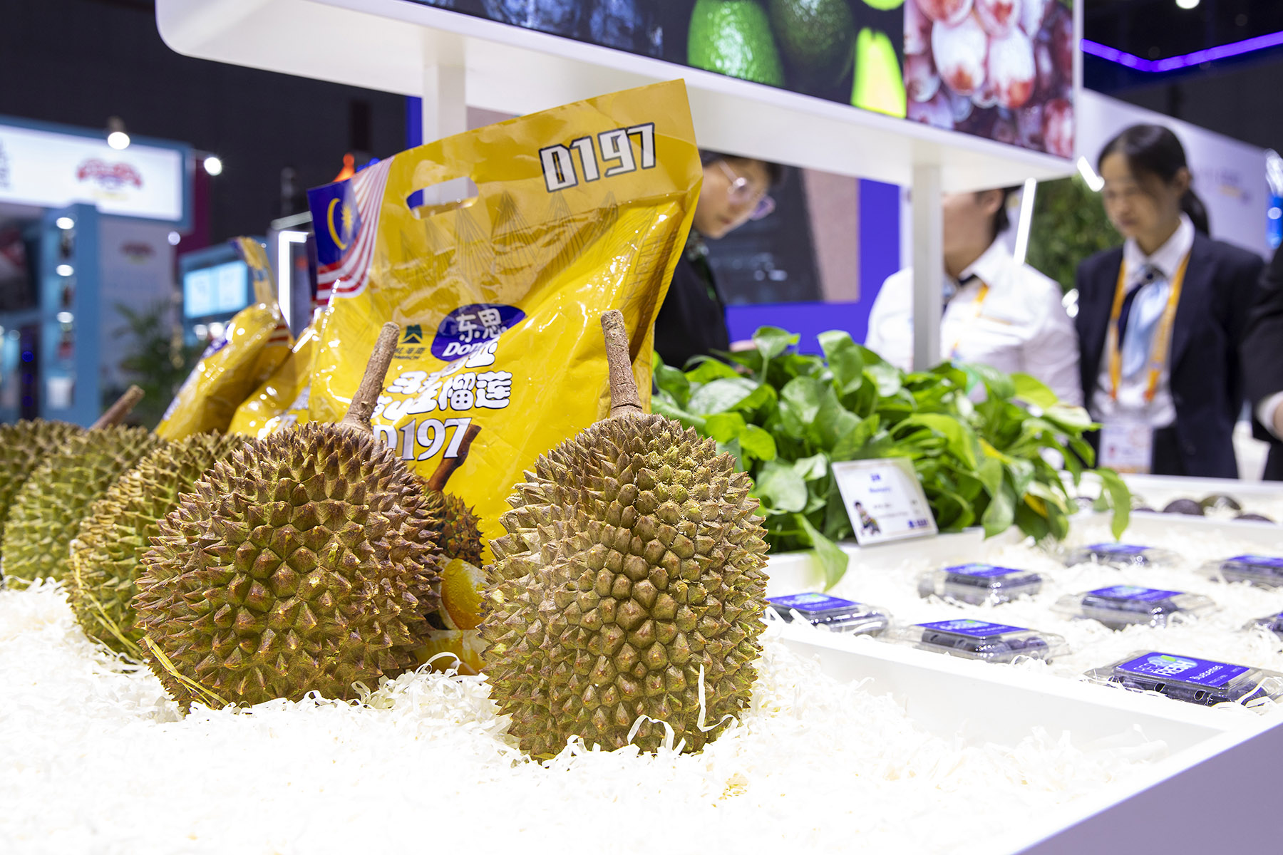 Malaysian durians are seen at the seventh China International Import Expo on Nov 9, 2024. (PROVIDED TO CHINA DAILY)