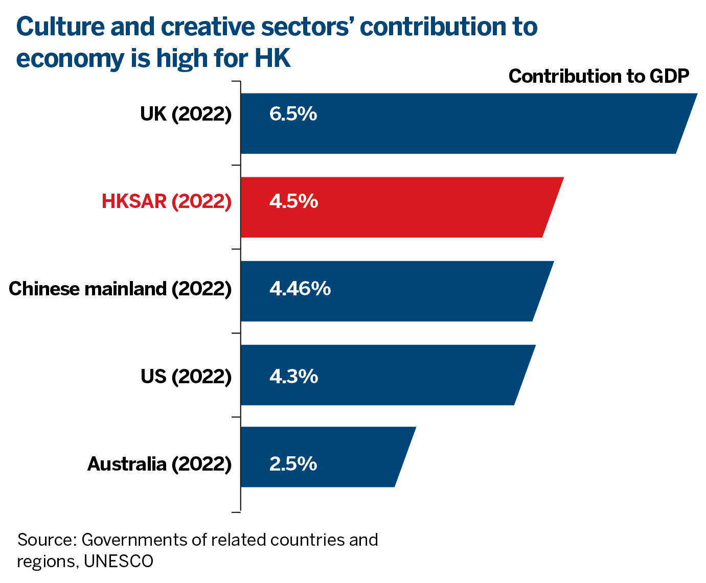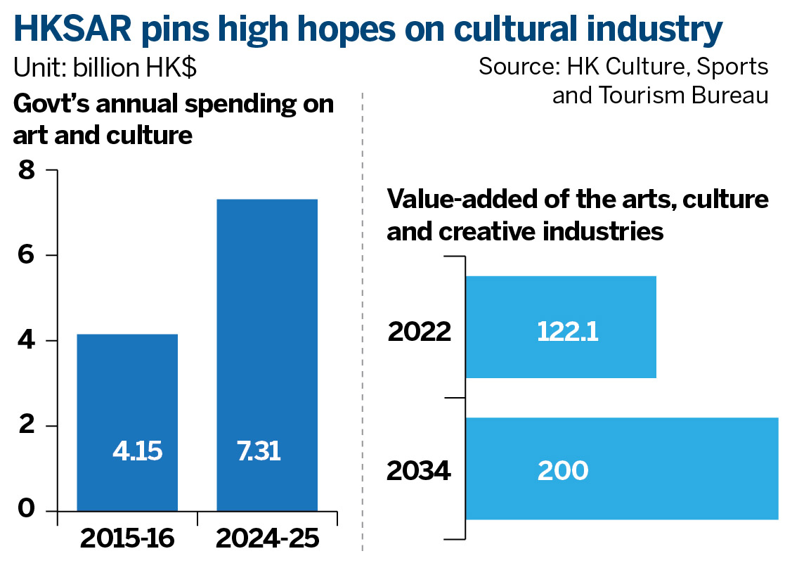The cultural and creative industries are powerful economic drivers worldwide, contributing 4.59 percent to the Chinese mainland’s gross domestic product, and 4.2 percent to US’ GDP in 2023. In Hong Kong, the proportion of non-public cultural services in the GDP pie is about 4.6 percent.