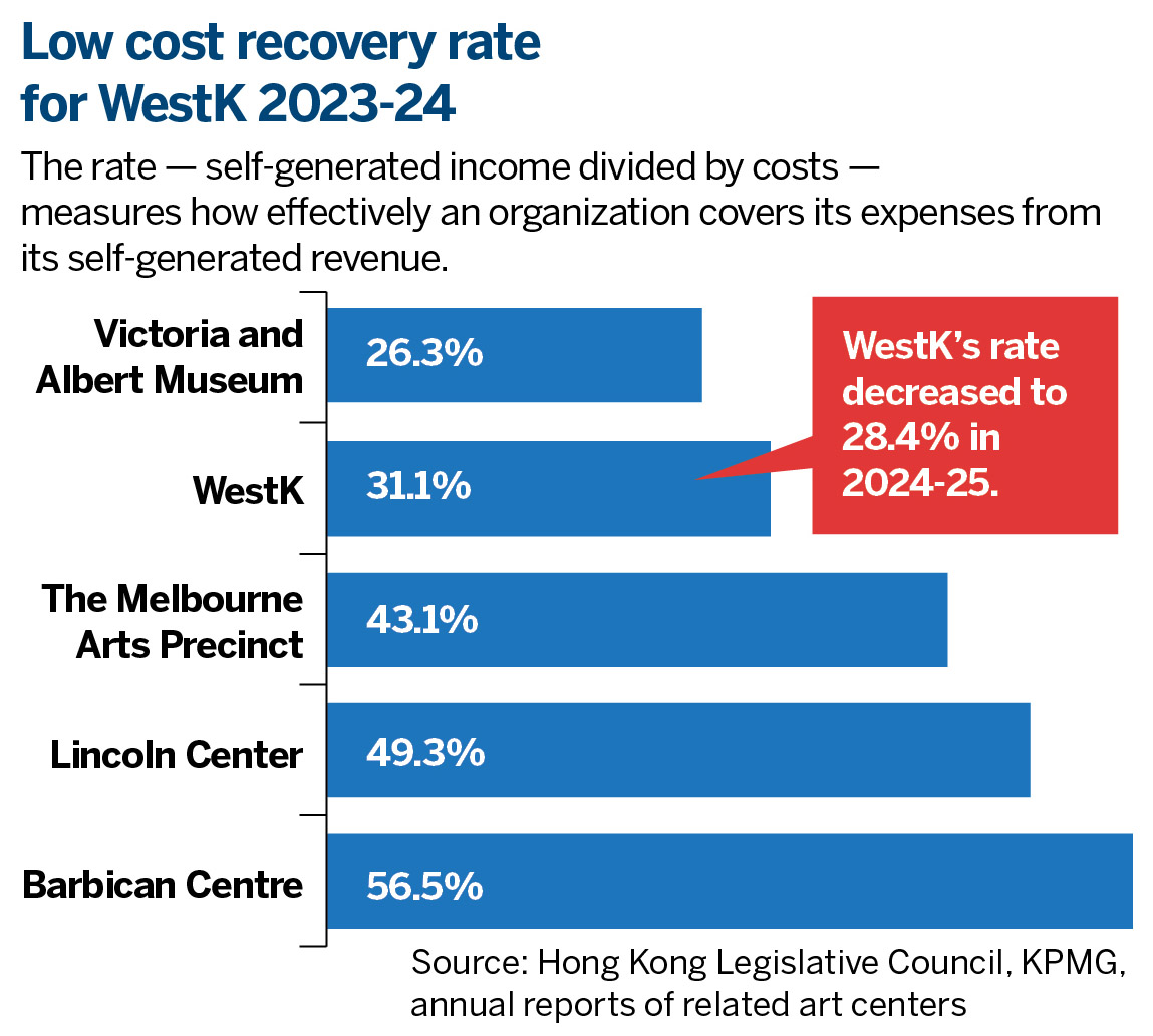 Policy incentives from the Hong Kong Special Administrative Region government over the years, as well as external capital, have failed to get the arts district out of the doldrums. Its massive deficit continues to bleed. The financial strain stems not only from over-optimistic projections, but also points to a more fundamental challenge — the feasibility of achieving financial sustainability for public cultural facilities.