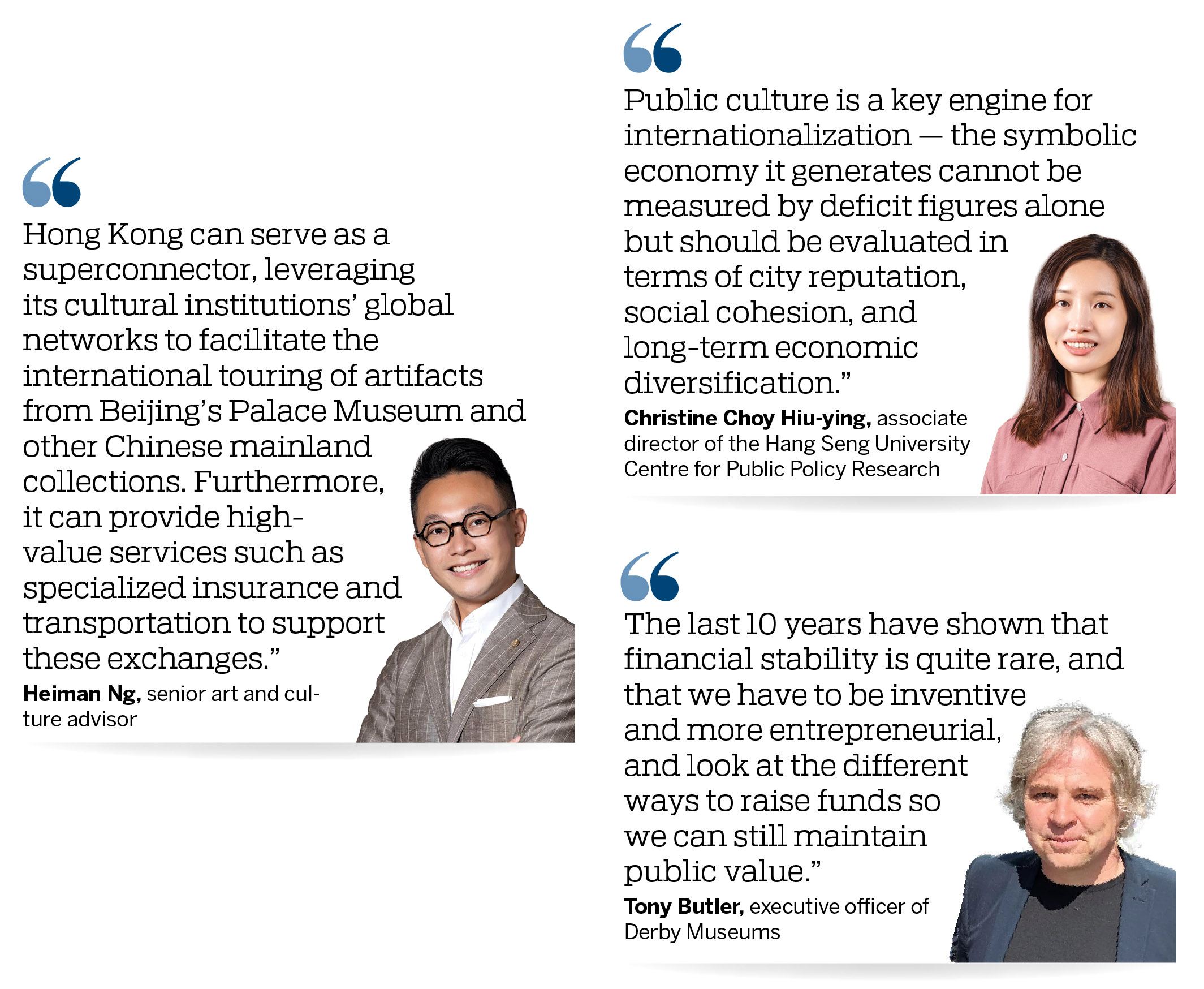 Christine Choy Hiu-ying, associate director of the Hang Seng University Centre for Public Policy Research, says public culture delivers significant social, educational, and economic benefits that are often not fully captured by conventional accounting. “They promote civic engagement, social cohesion and intercultural literacy, all essential qualities for a thriving society like Hong Kong.”