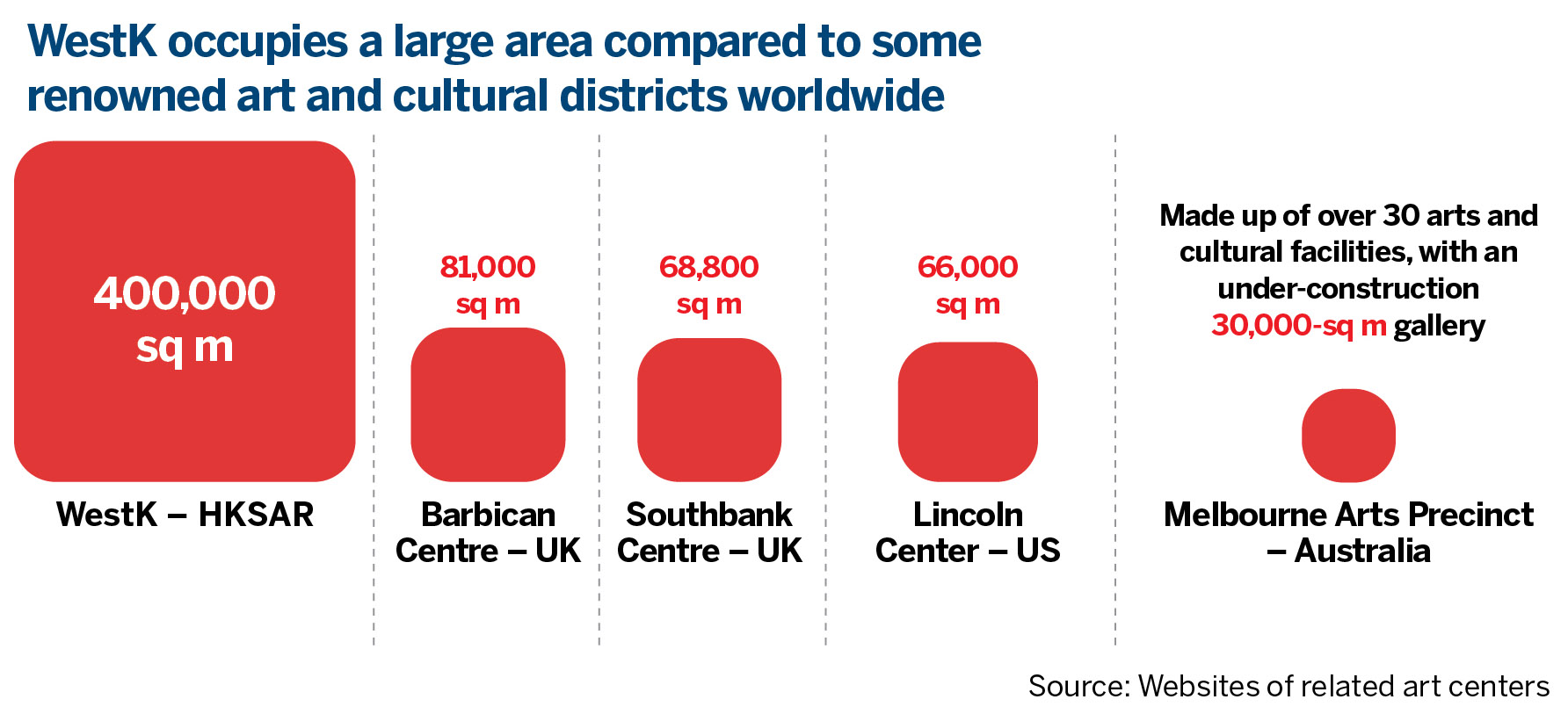 Based on spending on building infrastructure borne by the government, such as the HK$23.5 billion integrated basement project, the direct public funding invested in the WestK had exceeded HK$45 billion. Yet, the district is still far from its self-financing commitment, leading to several major facilities, such as the Centre for Contemporary Performance, being suspended or put on the back burner.
