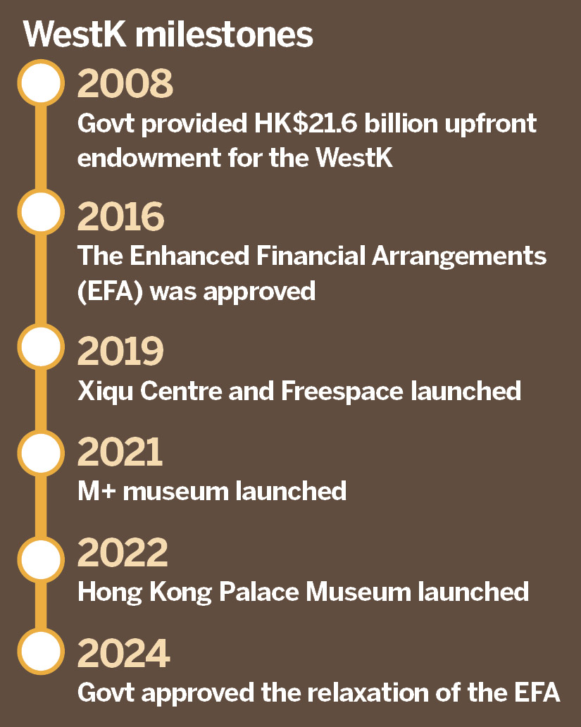 The WestK drew more than 15 million visits in the 2024-25 year, including 1.1 million participants on learning programs. Its value-added contribution to Hong Kong’s GDP is HK$3.78 billion.