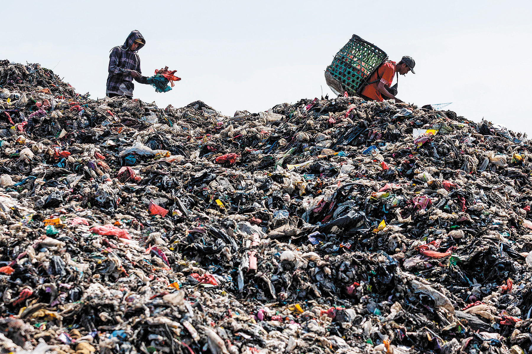 A scavenger collects used items such as plastics at the Cipeucang landfill, where the city plans a waste-to-energy plant to burn waste and generate electricity, in South Tangerang, which borders with South Jakarta, on Sept 2, 2025. (PHOTO / AFP)