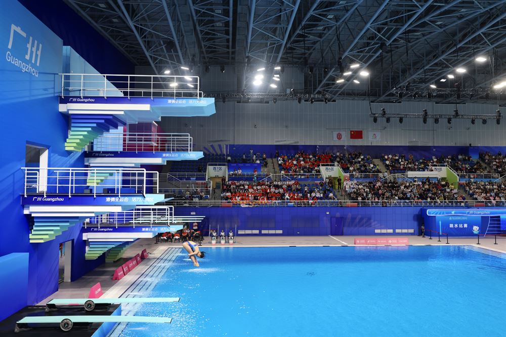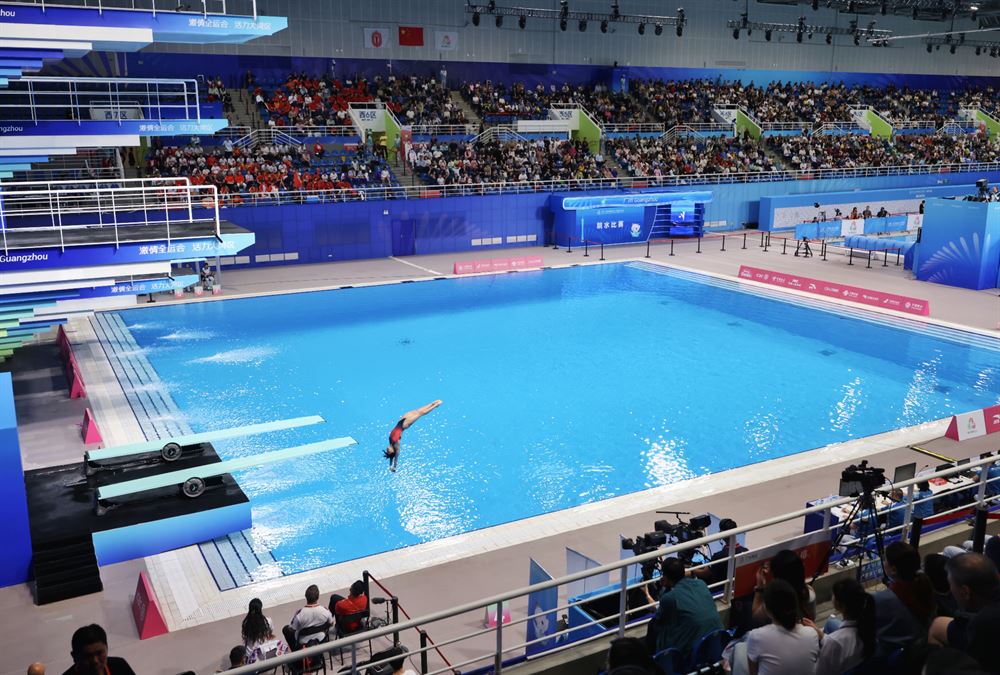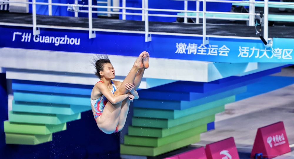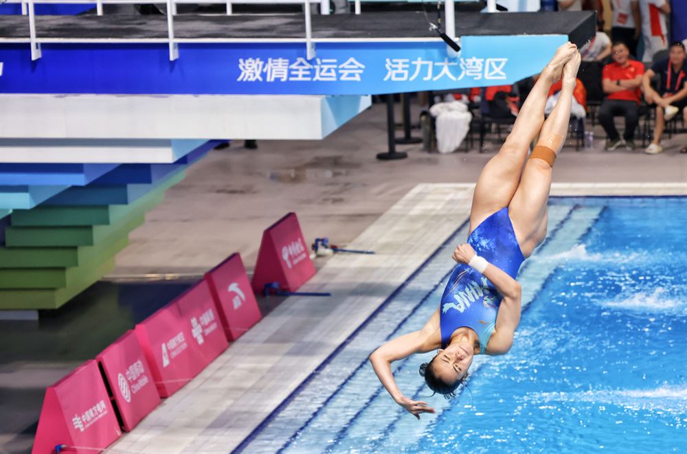 HONG KONG - The women's 1m springboard final event of the 15th National Games was held in Guangzhou, South China's Guangdong province, on Wednesday evening, with a total of 21 athletes from across the country competing for the top three spots.