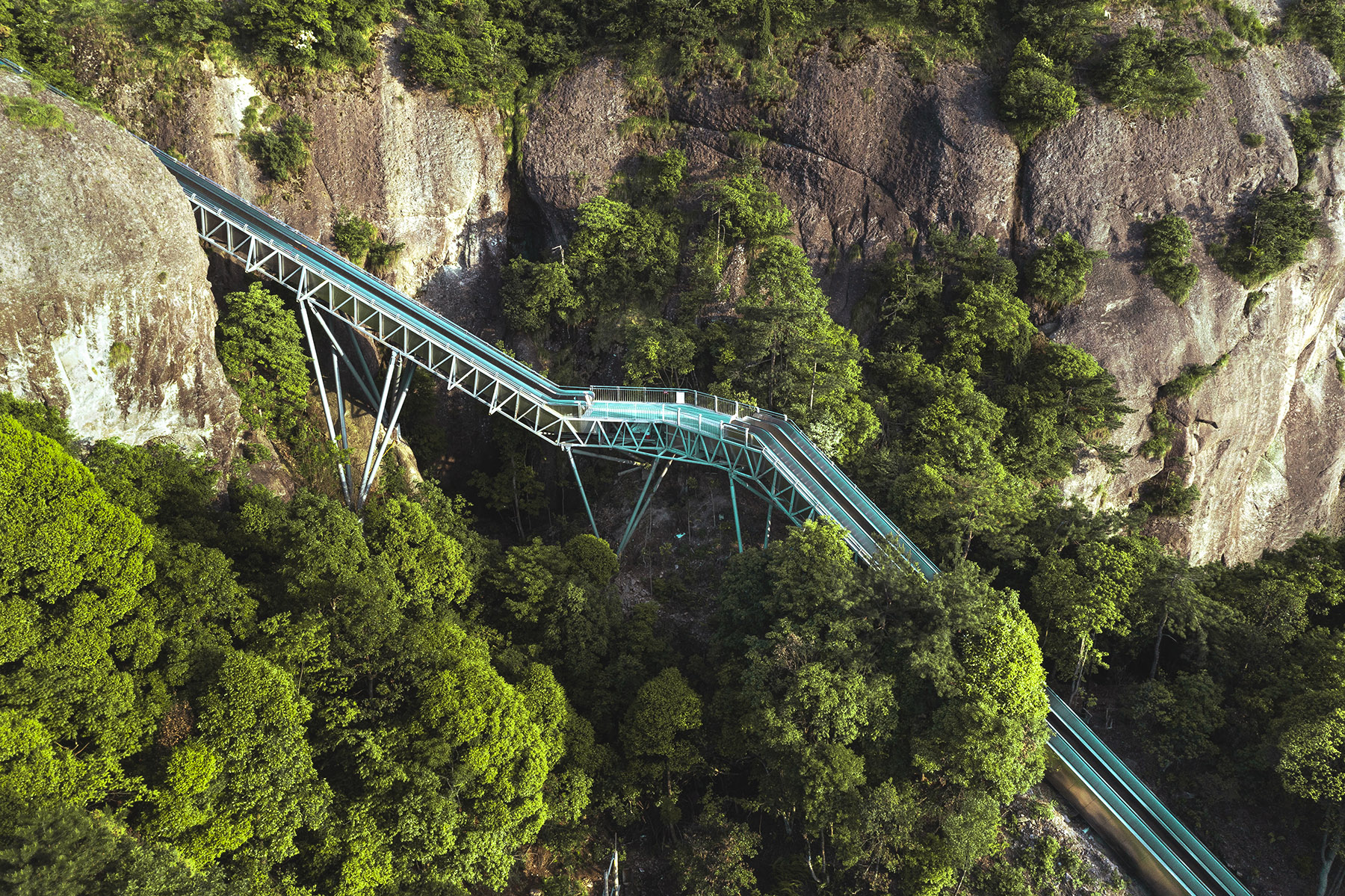 So the park designed a "no-sweat ascent", launched in October 2020, that consists of a carefully engineered system of cable cars, and escalators built into the mountainside, along with gentle walking trails with almost no perceptible incline.