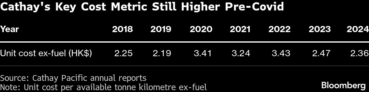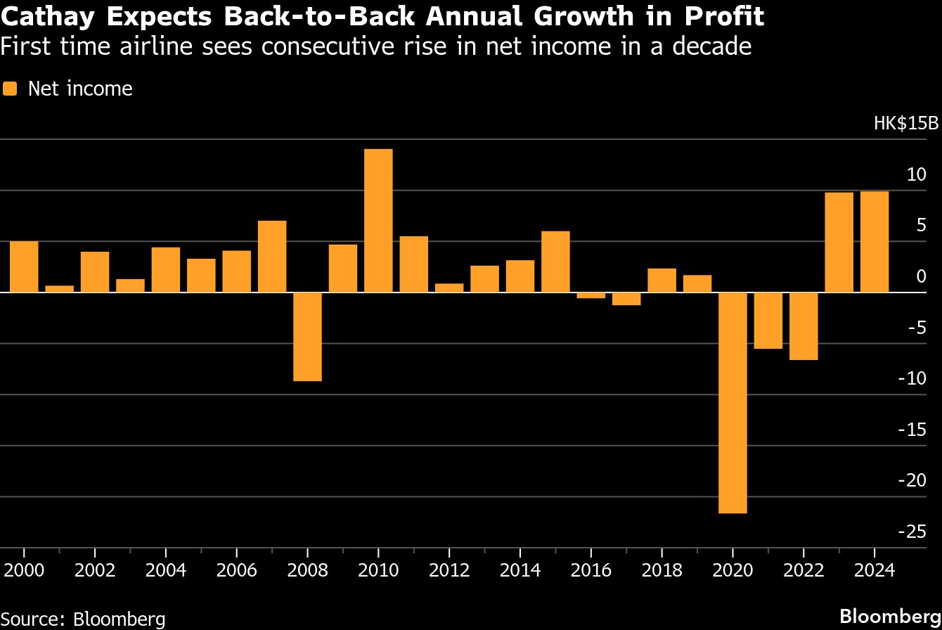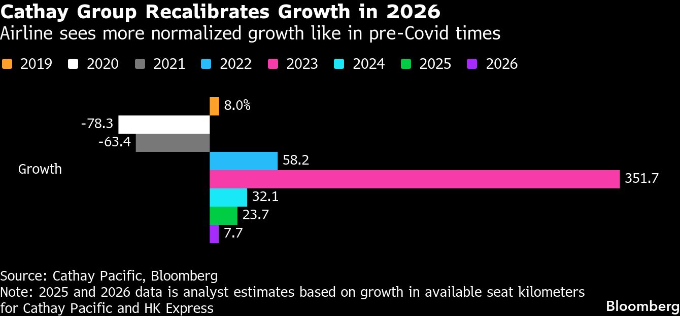 “Cost discipline will be critical for Cathay to sustain profitability as capacity growth slows,” Eric Zhu, a Bloomberg Intelligence analyst, said. “The group must also manage spending proactively to offset further pressure from declining passenger yields amid rising competition as foreign carriers add capacity.”