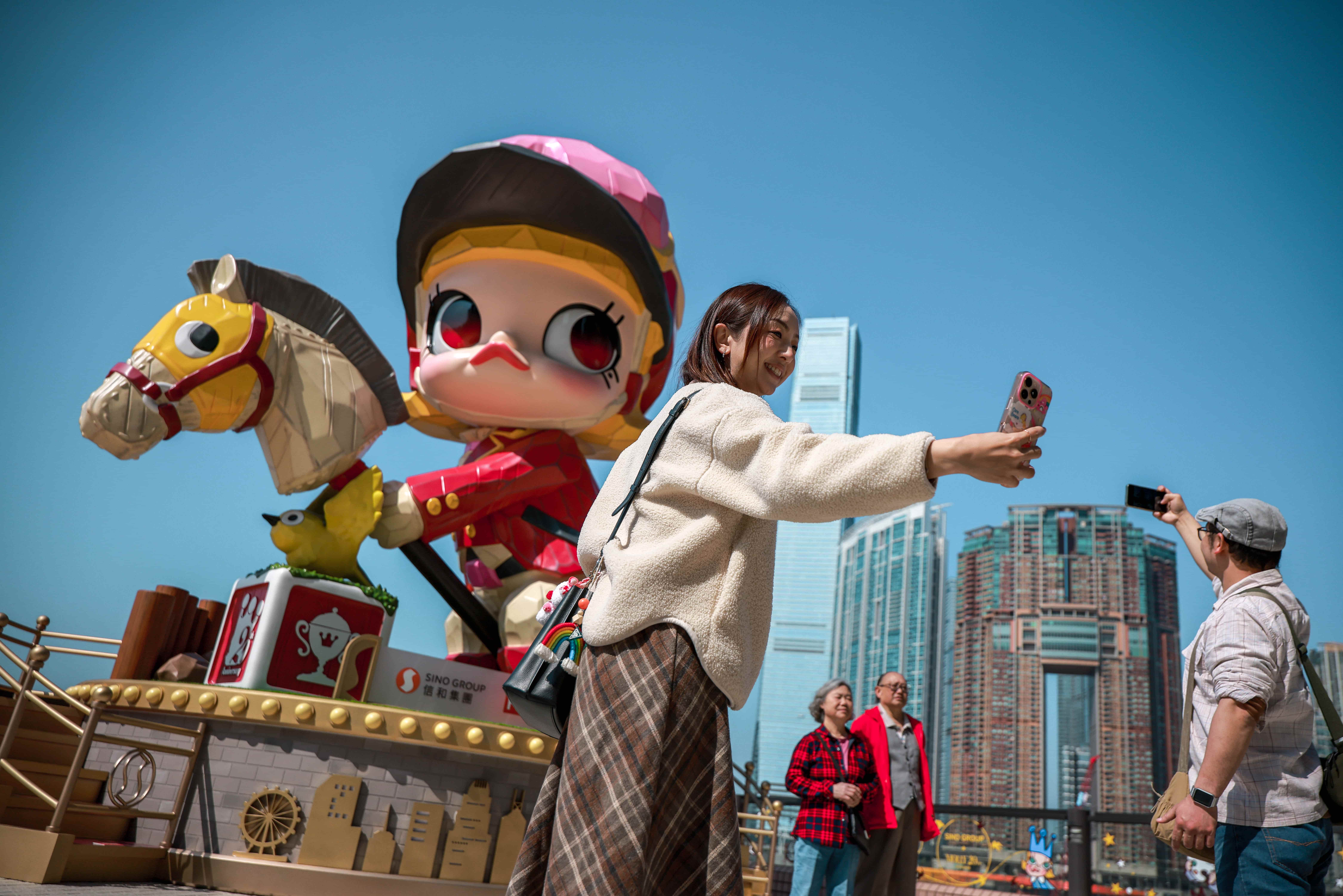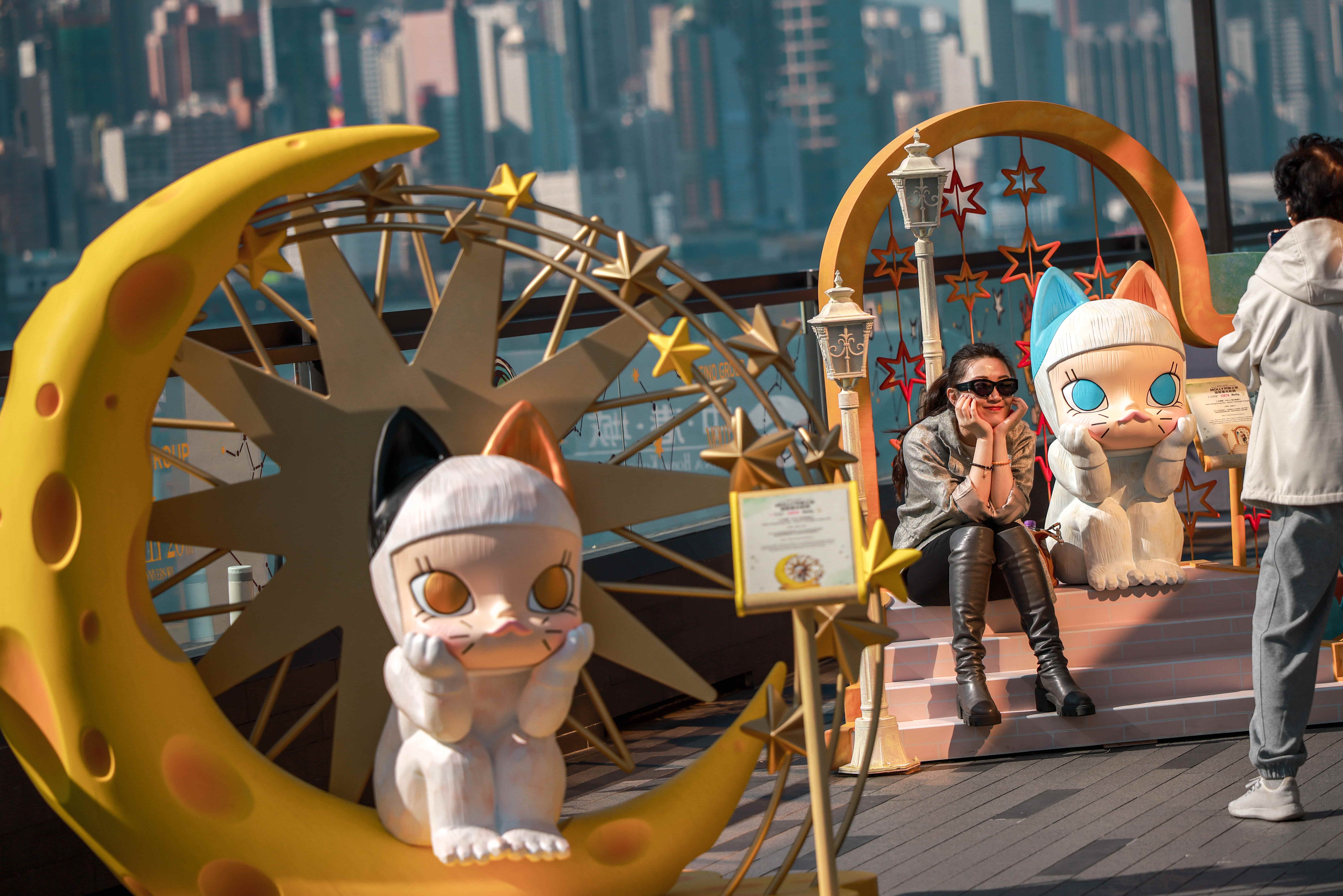 The installation marks the launch of "Shining Journey – Tracing Molly’s Starlight Footprint", a collaboration between Sino Group and Pop Mart that brings 55 beloved Molly sculptures to eight of its shopping malls.