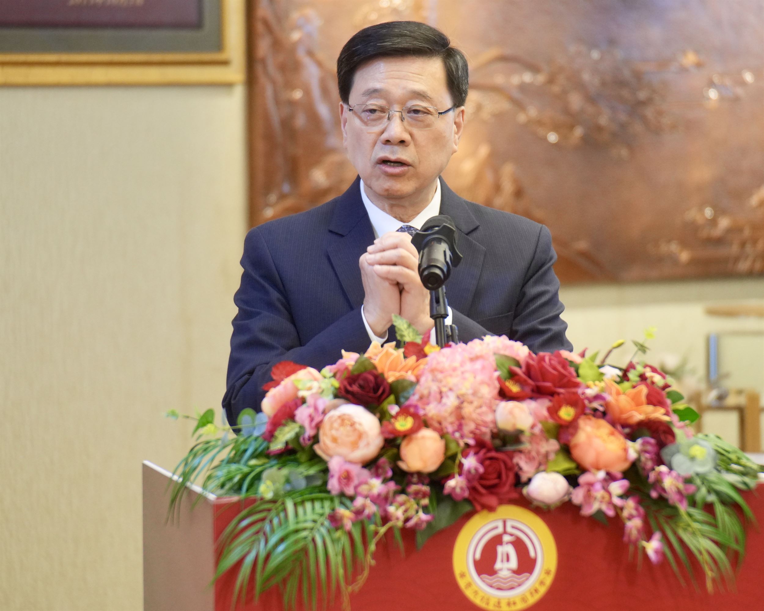 The reception was also attended by dignitaries including Chen Feng, deputy director of the Office for Safeguarding National Security of the Central People’s Government in the HKSAR; Zhang Changwei, deputy commissioner of the Office of the Commissioner of the Ministry of Foreign Affairs of the People's Republic of China in the HKSAR; Legislative Council President Starry Lee Wai-king; and Executive Council Convenor Regina Ip Lau Suk-yee.