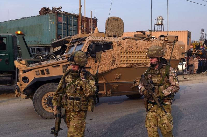 British soldiers are pictured at the scene of a suicide attack on a European Union police vehicle along the Kabul-Jalalabad road in Kabul on Jan 5, 2015. (WAKIL KOHSAR / AFP)