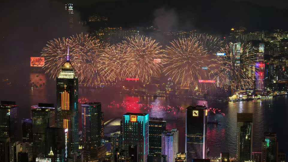 Police estimated that more than 344,000 people watched the fireworks on both sides of Victoria Harbour.