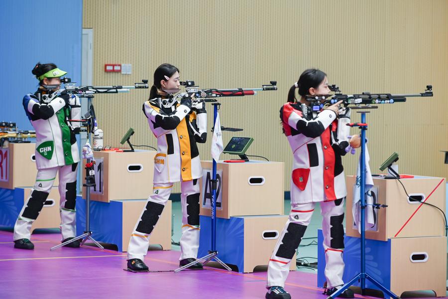 In the women's 10m air rifle team event, Zhejiang, featuring Olympic champion Huang Yuting, 2023 world champion Han Jiayu, and world record holder Wang Zifei, lived up to expectations. The trio had surpassed the previous world record in qualification with 1,903.6 points before Han captured individual gold in dramatic fashion on Monday.