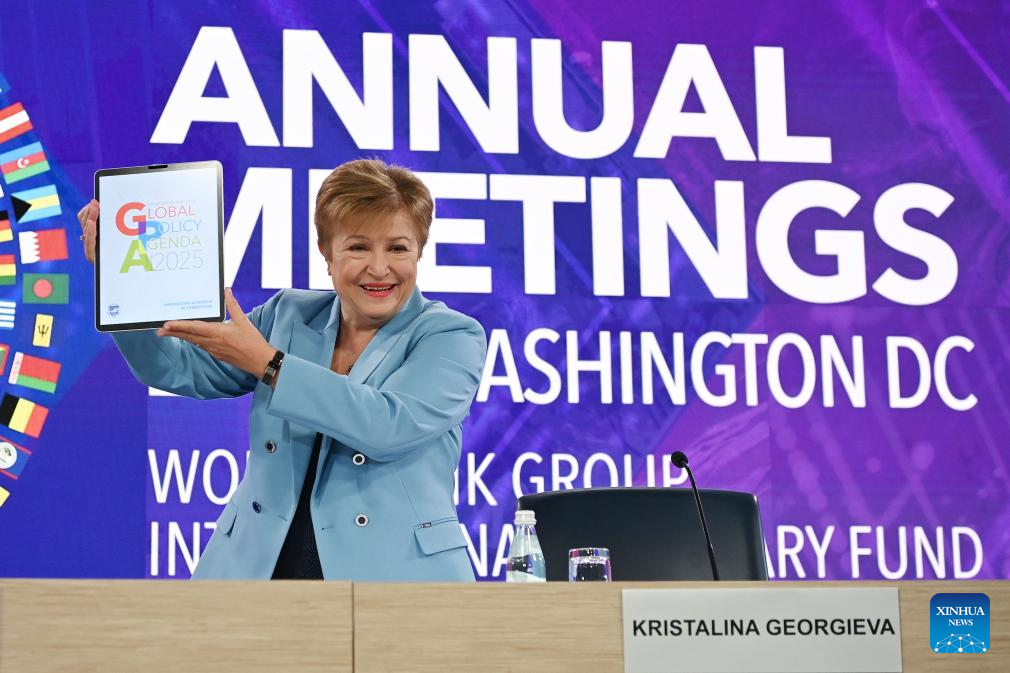 At the press conference, the IMF managing director unveiled the Global Policy Agenda, which emphasized three overarching priorities - unlock private sector growth, rebuild fiscal space and reduce debt, and reduce global imbalances.