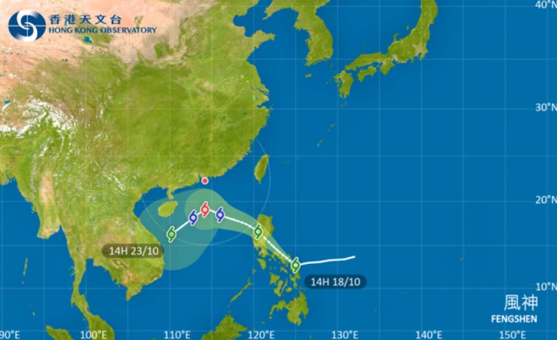 At 4 pm on Saturday, Fengshen was centered about 450 kilometers east-southeast of Manila and is forecast to enter within 800 km of Hong Kong later on Sunday, moving at about 22 km per hour, according to the Hong Kong Observatory.