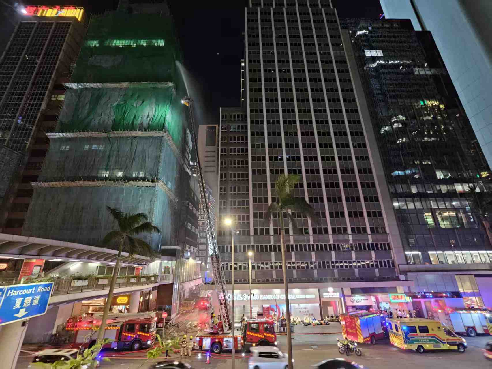 The blaze, which originated at 4:24 pm at a rear lane of Chinachem Tower on Connaught Road Central, was upgraded to No 3 alarm at 4:36 pm, according to a government announcement.