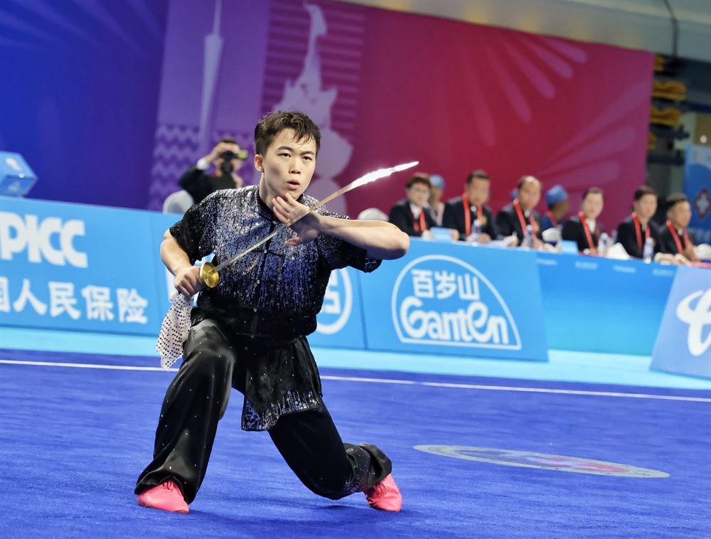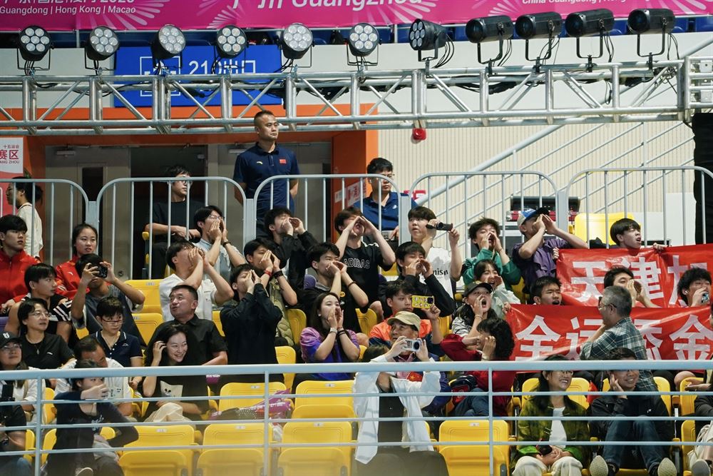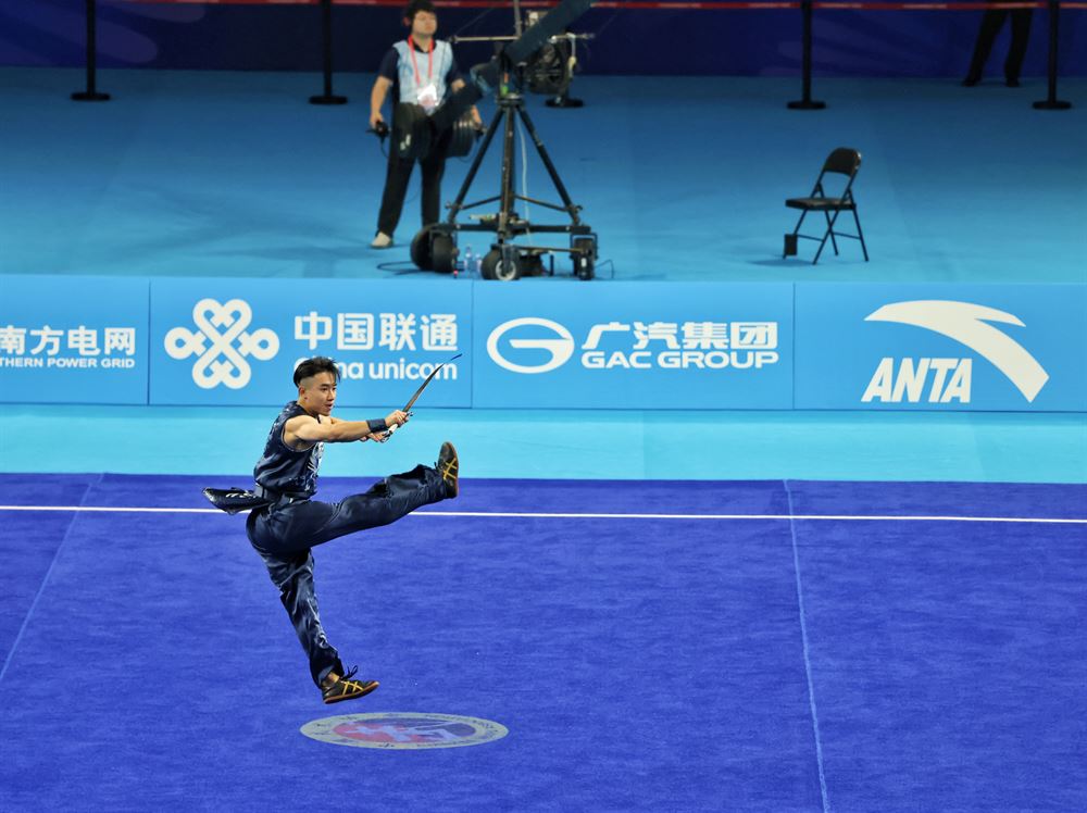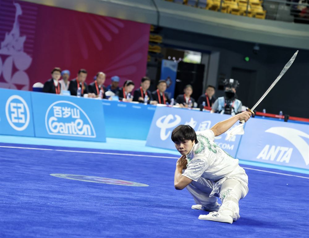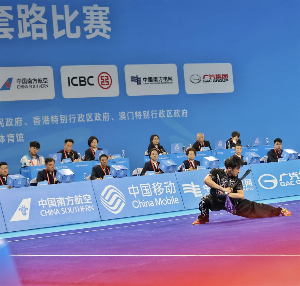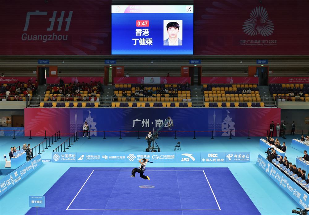 Chan Chi-ngou of Macao competes during the wushu routine event at the 15th National Games in Guangzhou, South China's Guangdong province, on Nov 7, 2025. (PARKER ZHENG / CHINA DAILY)Lei Cheok-Ieong of Macao competes during the wushu routine event at the 15th National Games in Guangzhou, South China's Guangdong province, on Nov 7, 2025. (PARKER ZHENG / CHINA DAILY)Kinson Ting Kin-sing of Hong Kong competes during the wushu routine event at the 15th National Games in Guangzhou, South China's Guangdong province, on Nov 7, 2025. (PARKER ZHENG / CHINA DAILY)Spectators cheer for athletes during the wushu routine event at the 15th National Games in Guangzhou, South China's Guangdong province, on Nov 7, 2025. (PARKER ZHENG / CHINA DAILY)