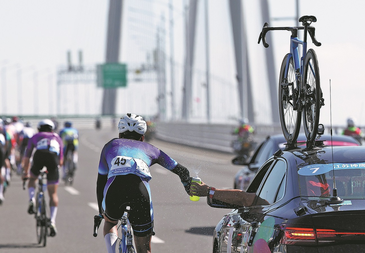 Han Feng, deputy secretary-general of the Chinese Cycling Association, said racing on the bridge — which spans 55 km and is among the world's longest cross-sea bridges — was a bold and challenging concept.