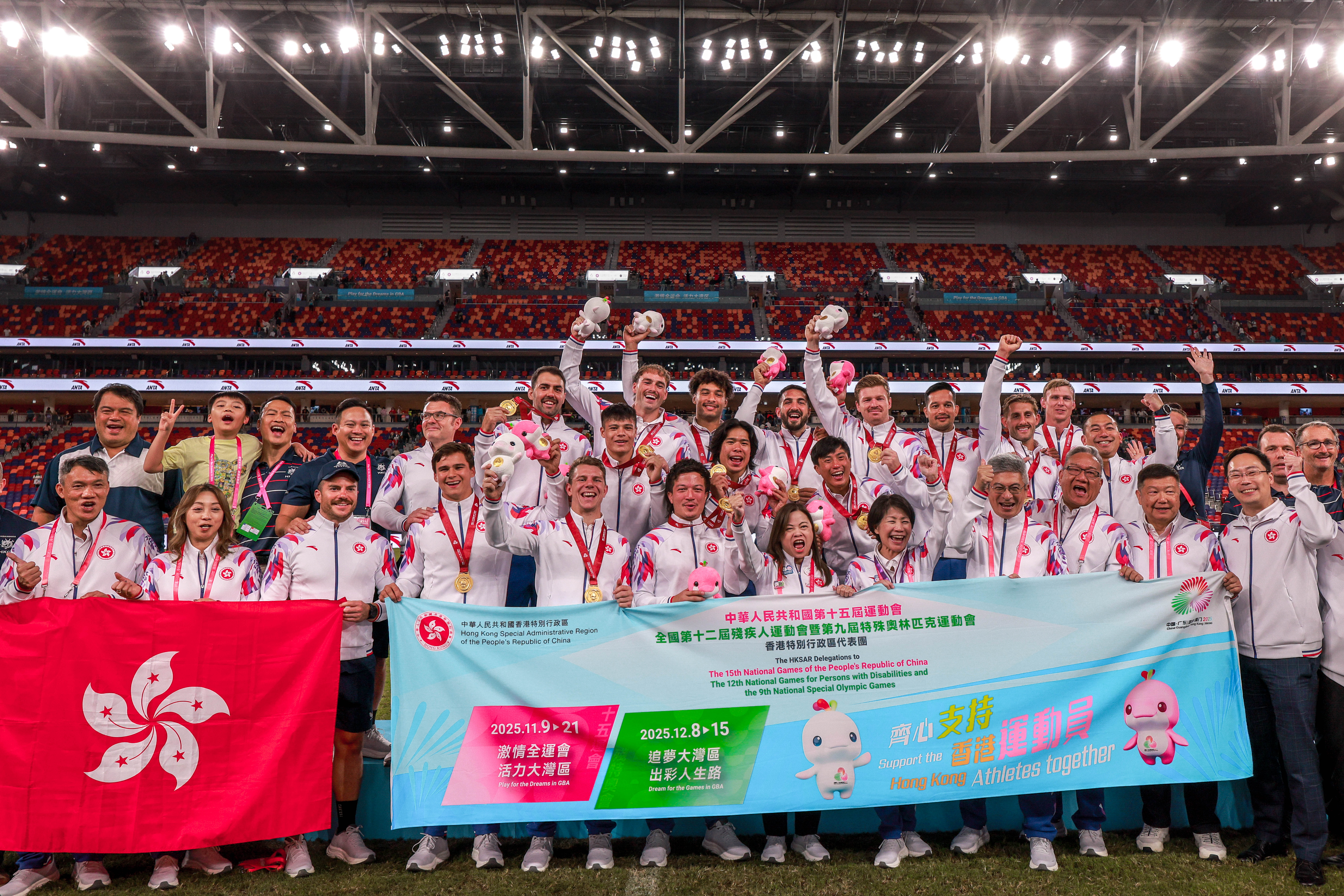 The Hong Kong men’s rugby team secured its first gold medal in the 15th National Games by defeating its old rival from Shandong by a score of 26-19 in men’s rugby sevens, also triumphing in all its matches throughout this year’s event.